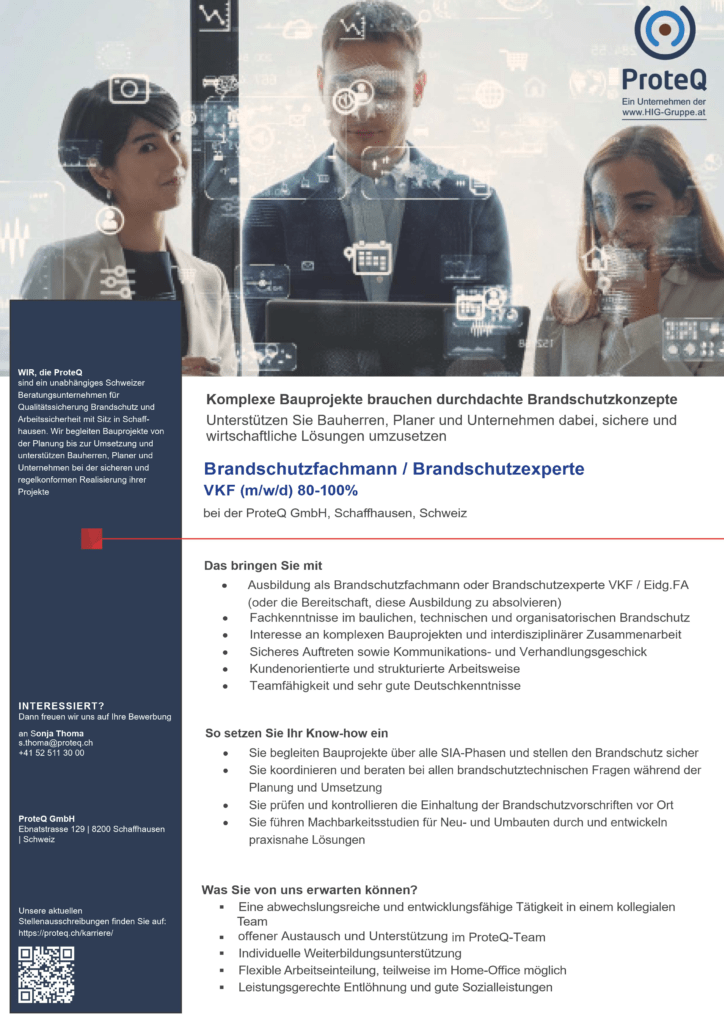 Brandschutzfachmann / Brandschutzexperte VKF / eidg FA (m/w/d)